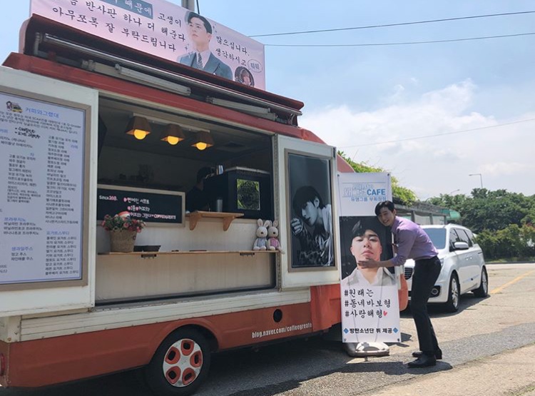 Trước đó, giọng ca của ZE:A cũng đã gửi một xe tải cà phê kèm bánh ngọt đến trường quay của Park Seo Joon.