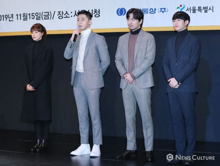 Các phóng viên báo chí yêu cầu mọi người xíc lại gần nhau hơn cho kiểu chụp cuối cùng, và Park Seo Joon bỗng nở nụ cười dễ thương nhất trên khuôn mặt khi Lee Na Young bước đến bên cạnh anh!