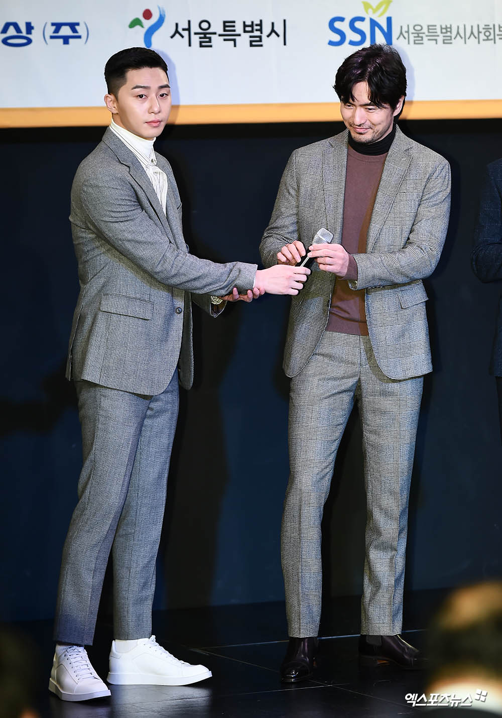Kể từ khi bắt đầu sự kiện, Park Seo Joon thậm chí còn không thể đứng gần Lee Na Young và để một khoảng cách lớn giữa cả hai trên đứng trên sân khấu. Park Seo Joon hoàn toàn không gặp vấn đề gì khi lấy micro từ “tiền bối” Lee Jin Wook.