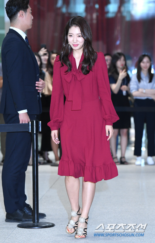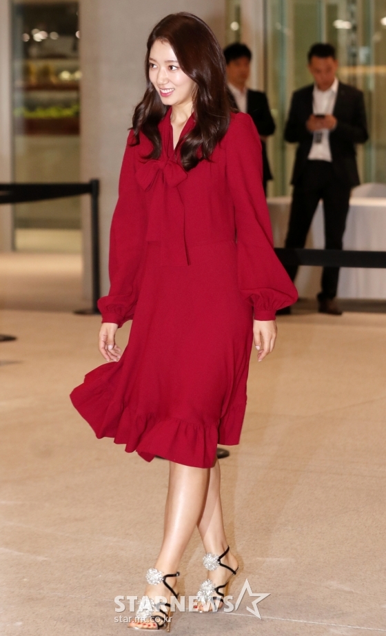 Park Shin Hye nổi bật với bộ đầm màu đỏ rượu vang.