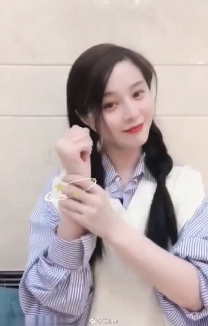 Mới đây, trên Weibo đăng tải video Phạm Băng Băng tuyên truyền phòng chống dịch virus bằng việc rửa tay. Trong video, nữ diễn viên mặc chiếc áo sơ mi sọc xanh kết hợp với áo dệt kim màu trắng, tóc được thắt bím hai bên. Dáng vẻ của nàng đại hoa trông rất thuần khiết và đáng yêu, như một cô gái nhỏ. Thời gian cứ trôi còn cô nàng lại càng trẻ ra, dáng vẻ luôn rất yêu đời.