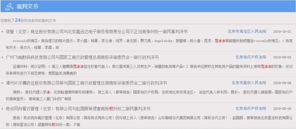 Đa số những vụ kiện mà Phạm Băng Băng dành chiến thắng liên quan đến những tin đồn thất thiệt hay xâm phạm hình ảnh thương mại chưa qua sự xin phép. Thông tin được đăng tải trên trang pháp luật Thẩm phán pháp viện Bắc Kinh công khai, có thể thống kê số vụ kiện mà Phạm Băng Băng giành chiến thắng từ tháng 12.2018 đến nay lên đến hơn 120 vụ. Trong đó, liên quan đến việc xâm phạm chân dung thương mại có 97 vụ, còn giành chiến thắng trong việc đòi lại quyền danh dự với những tin đồn thất thiệt gồm 24 vụ kiện.