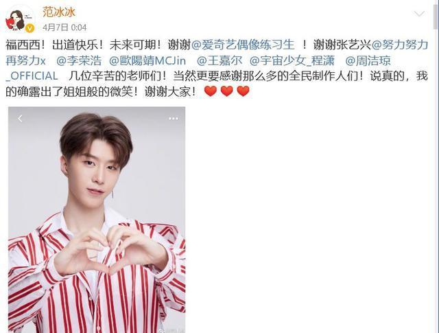 Phạm Băng Băng đăng weibo chúc mừng em trai chính thức được debut!