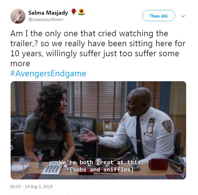 “Có ai giống tui không, vừa coi trailer vừa khóc,? vậy là chúng ta đã ngồi đây suốt 10 năm, tự nguyện chịu đựng chỉ để chịu đựng nhiều hơn nữa“