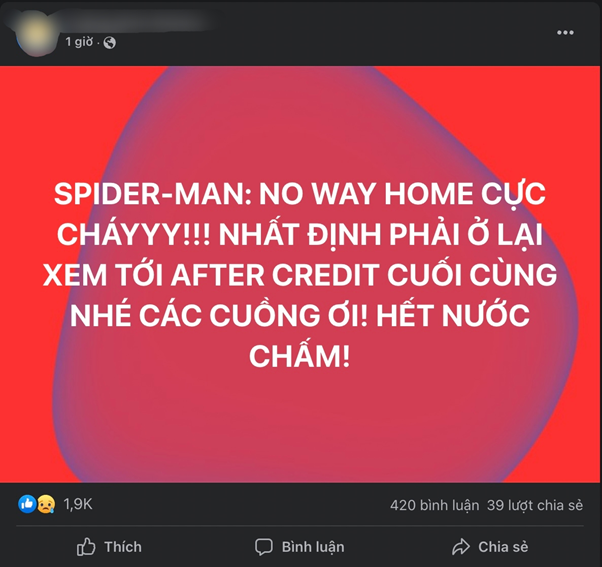 Có thể thấy, khán giả Việt đều nhận xét Spider-Man: No Way Home là bộ phim “đỉnh” nhất thương hiệu Người Nhện từ trước đến nay, thậm chí còn hơn cả Avengers: Endgame. Tác phẩm được xem như một bom tấn đúng nghĩa về mặt hình ảnh, kỹ xảo, cảm xúc và cách xây dựng nhân vật.