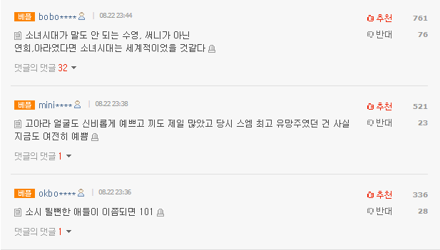1. [+761, -76] Nếu SNSD chọn Yeon Hee và Ara thay vì Sooyoung và Sunny, lý do tại sao thì bạn biết rồi đấy, thì chắc chắn SNSD sẽ là nhóm nhạc nữ nổi tiếng toàn cầu