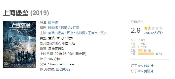 Phim điện ảnh Trung Quốc năm nay được nhiều khán giả yêu thích, nhất là đề tài khoa học viễn tưởng và trở thành chủ đề được tìm kiếm, bình luận khá nhiều. Lưu lạc địa cầu được chuyển thể từ tiểu thuyết của tác giả Lưu Từ Hân do Ngô Kinh đóng chính đã nhận được sự thành công vang dội vì sự yêu thích của khán giả. Tuy nhiên không phải cứ đề tài khoa học viễn tưởng sẽ được yêu thích và ủng hộ, ví dụ như Pháo đài Thượng Hải do Lộc Hàm, Thư Kỳ đóng chính vừa được công chiếu vào tháng Tám.