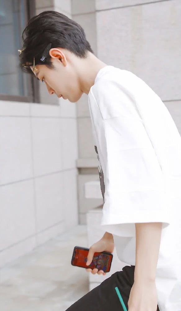 Tiêu Chiến mặc chiếc áo Tshort này làm da anh phần nào trắng thêm, duy chỉ chiếc điện thoại được cầm trong tay là thu hút sự chú ý nhiều nhất. Nhìn kỹ thì sau lưng điện thoại của Tiêu Chiến là là hình ông Thần tài, cũng chính vì vậy khó trách fan hâm mộ đều gọi Tiêu Chiến là Tiền ca ca. Hình thần tài này được Tiêu Chiến sử dụng làm hình nền rất lâu rồi, dù giờ đây anh đã vô cùng nổi tiếng nhưng thói quen vẫn không đổi.