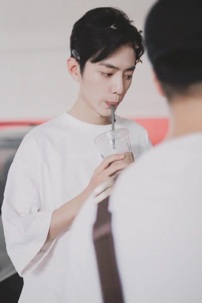 Ngày 16.08, có dân mạng tiết lộ hình ảnh Tiêu Chiến trên đoàn phim. Trong hình, nam diễn viên mặc áo Tshirt màu trắng kiểu rộng, trên tay cầm một ly nước đang uống. Điều khiến fan buồn cười lại thích thú khi trên đầu của Tiêu Chiến có đầy kẹp tóc nhỏ, nhìn với góc độ này thì gương mặt anh chàng có phần gầy, lông mày thanh tú, sống mũi rất cao, ngũ quan thật sự tinh tế vô cùng.