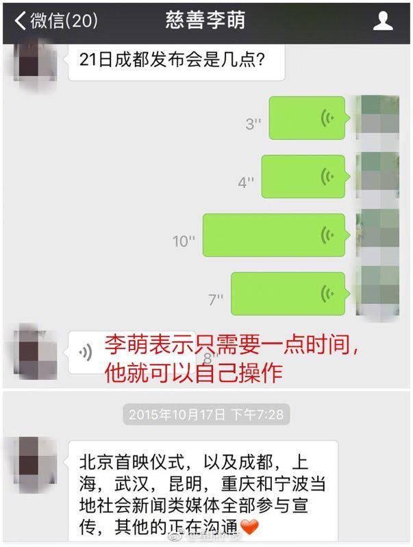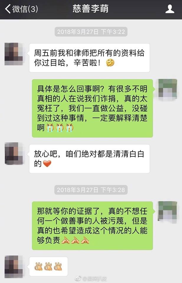 Bằng chứng được cho là tin nhắn về việc giao dịch tiền từ thiện giữa đoàn đội Dương Mịch và Lý Manh