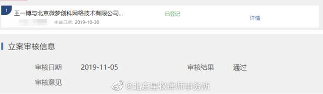 Vào ngày hôm nay (7/11), Phòng nghiệp vụ luật sự Tinh Quyền Bắc Kinh đã đưa ra thông báo về vụ án có liên quan đến danh dự của Vương Nhất Bác. Trong nội dung, họ sẽ khởi kiện 6 người dùng mạng có tài khoản liên quan đến việc lăng mạ, phỉ báng Vương Nhất Bác tại Tòa án Internet Bắc Kinh; thỉnh cầu tòa án cho từng người dùng mạng này lên tiếng xin lỗi công khai đồng thời bồi thường tổn thất kinh tế, tổn thất tinh thần có liên quan cho ông Vương Nhất Bác.