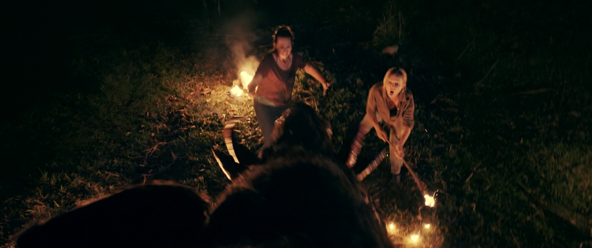 Không chỉ dừng lại ở đó, sự xuất hiện của heo rừng ác thú tấn công một nhóm bốn người đi cắm trại như làm rõ thêm về thị giác của ác thú này với tầm nhìn được làm lờ mờ với những mảng ánh sáng đỏ. Giữa đồng không mông quạnh đôi nam nữ quấn lấy nhau trong lều thì bất chợt cô nàng mất cảm xúc, bảo anh chàng mặc quần áo vào đi mua nước và kiếm hai người còn lại.