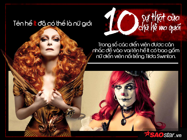 Trong số các diễn viên được cân nhắc để vào vai tên hề It có bao gồm nữ diễn viên nổi tiếng Tilda Swinton. Nổi tiếng với vai mụ Phù Thủy Băng Tuyết trong series Biên Niên Sử Narnia, Tilda Swinton có nước da trắng toát cùng gương mặt góc cạnh khá hợp đóng vai độc ác. Nếu như Tilda được nhận đóng vai này thì giờ đây chúng ta đã có một “bà hề”, thay vì gã hề bệnh hoạn như trong phim chính thức.