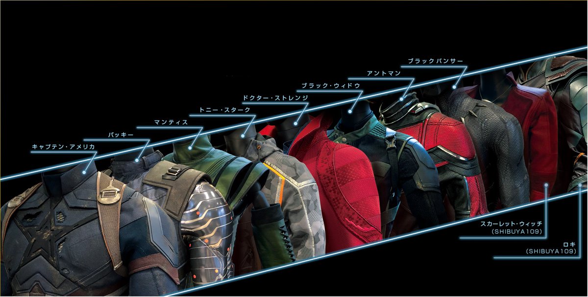 Bức ảnh này quả là tuyệt vời. Chúng ta nhìn thấu được toàn bộ những trang phục của các siêu anh hùng Marvel trong phim, từ bộ vest của Ant-Man cho đến Black Panther, thậm chí cả trang phục chiến đấu của Black Widow.