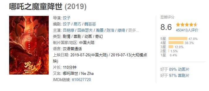 Na Tra chi Ma đồng giáng thế công chiếu được 8 ngày đã phá kỷ lục phòng vé là 1,53 tỷ NDT, qua mặt luôn phim thể loại hoạt hình điện ảnh tên Zootopia.