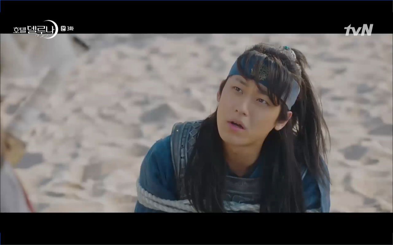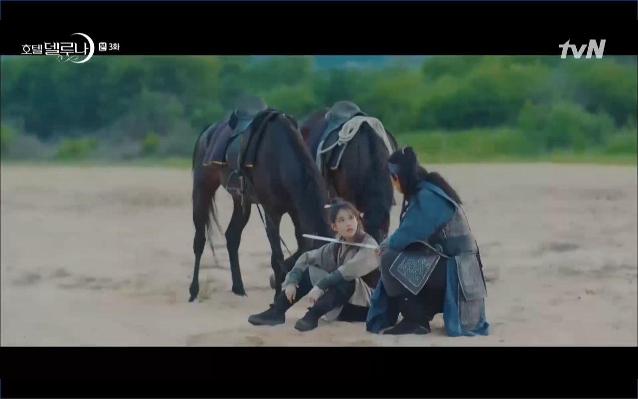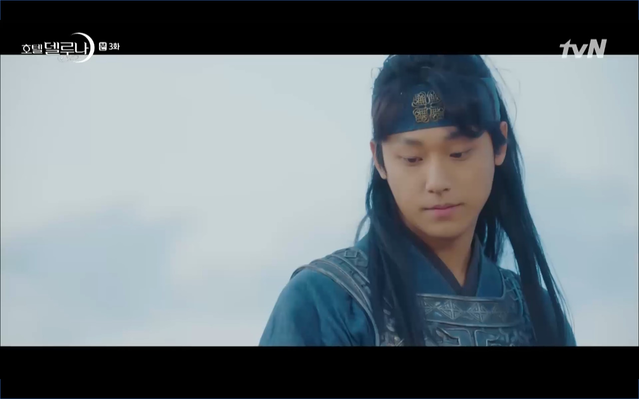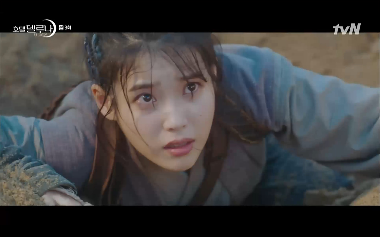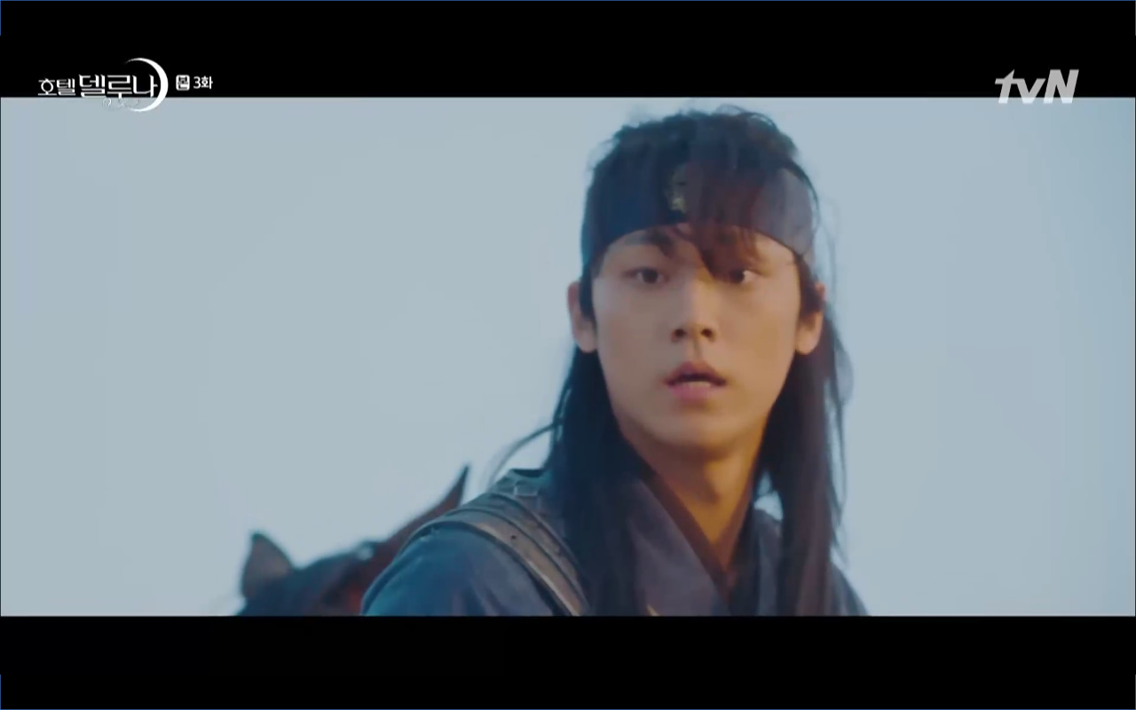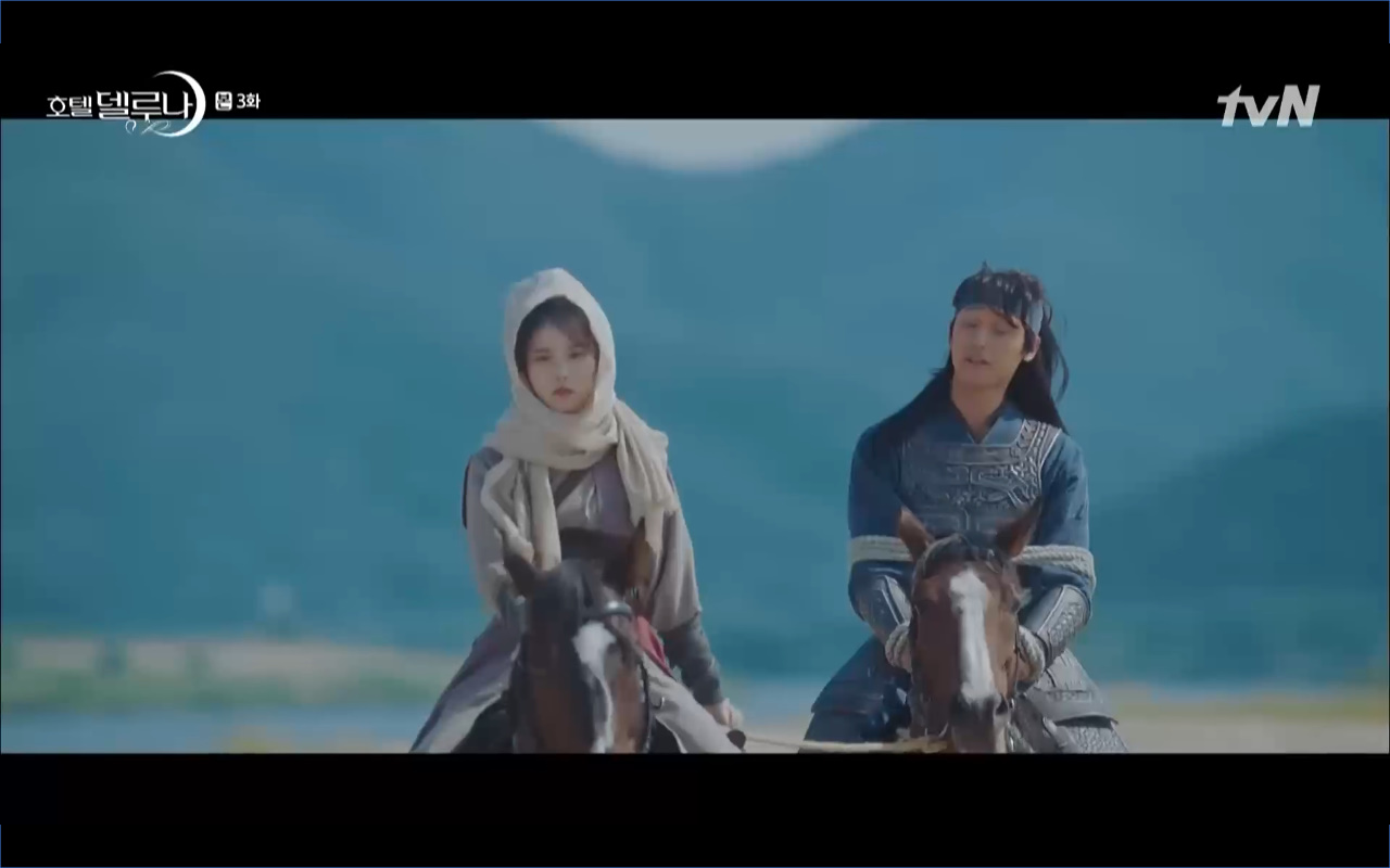 Hotel Del Luna tập 3 mở đầu bằng khung cảnh hồi tưởng về quá khứ của Jang Man Wol (IU), một phần ký ức trước khi cô bị giam cầm ở khách sạn ánh trăng. Trong tiền kiếp, Man Wol quen biết một tên thị vệ từ cuộc nổi loạn cướp bóc của băng đảng do mình cầm đầu. Xuất phát điểm cả hai là thù địch nhưng rồi gắn kết trở thành một phần ý nghĩa trong nhau, anh là tù nhân cũng là ân nhân cứu mạng cô. Chuỗi ký ức không chỉ có Man Wol sở hữu mà đến Go Chan Sung (Yeo Jin Goo) cũng mơ hồ nhìn thấy bản ngã đó trong những giấc mơ của chính mình. Họ thật sự có duyên nợ từ ngàn năm trước?