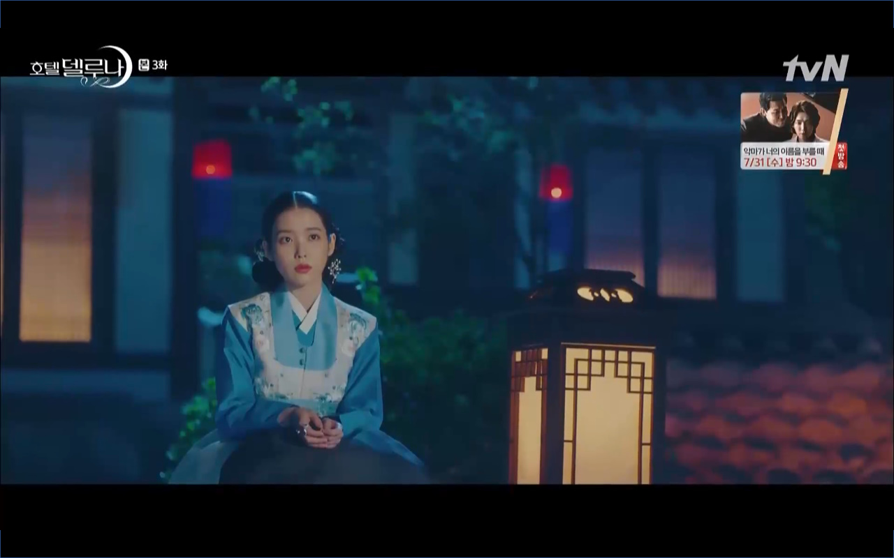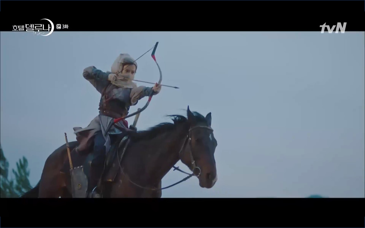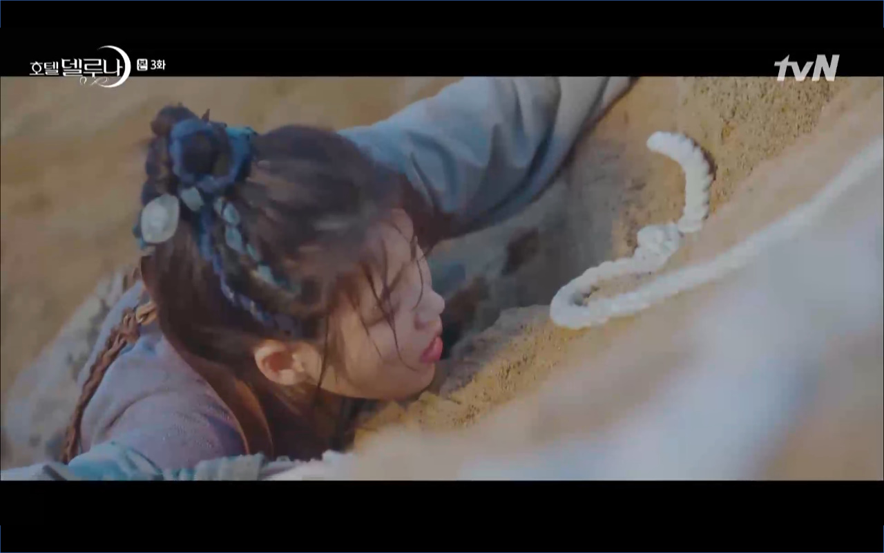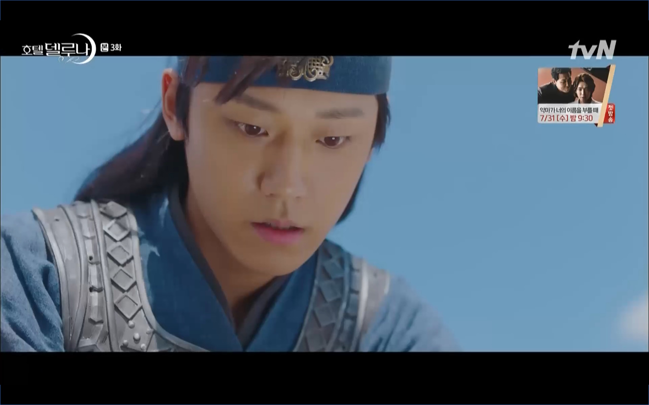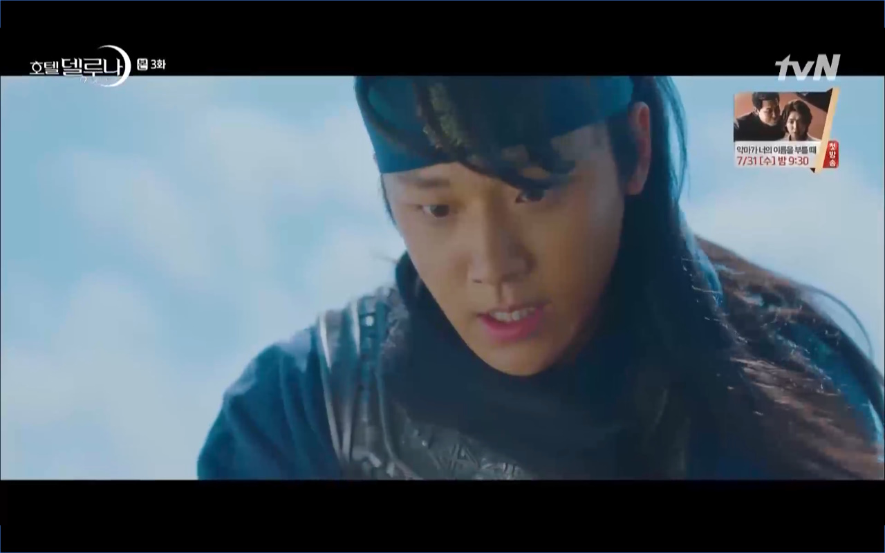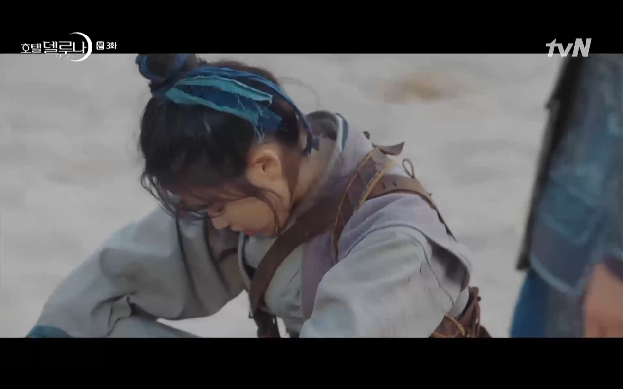 Hotel Del Luna tập 3 mở đầu bằng khung cảnh hồi tưởng về quá khứ của Jang Man Wol (IU), một phần ký ức trước khi cô bị giam cầm ở khách sạn ánh trăng. Trong tiền kiếp, Man Wol quen biết một tên thị vệ từ cuộc nổi loạn cướp bóc của băng đảng do mình cầm đầu. Xuất phát điểm cả hai là thù địch nhưng rồi gắn kết trở thành một phần ý nghĩa trong nhau, anh là tù nhân cũng là ân nhân cứu mạng cô. Chuỗi ký ức không chỉ có Man Wol sở hữu mà đến Go Chan Sung (Yeo Jin Goo) cũng mơ hồ nhìn thấy bản ngã đó trong những giấc mơ của chính mình. Họ thật sự có duyên nợ từ ngàn năm trước?