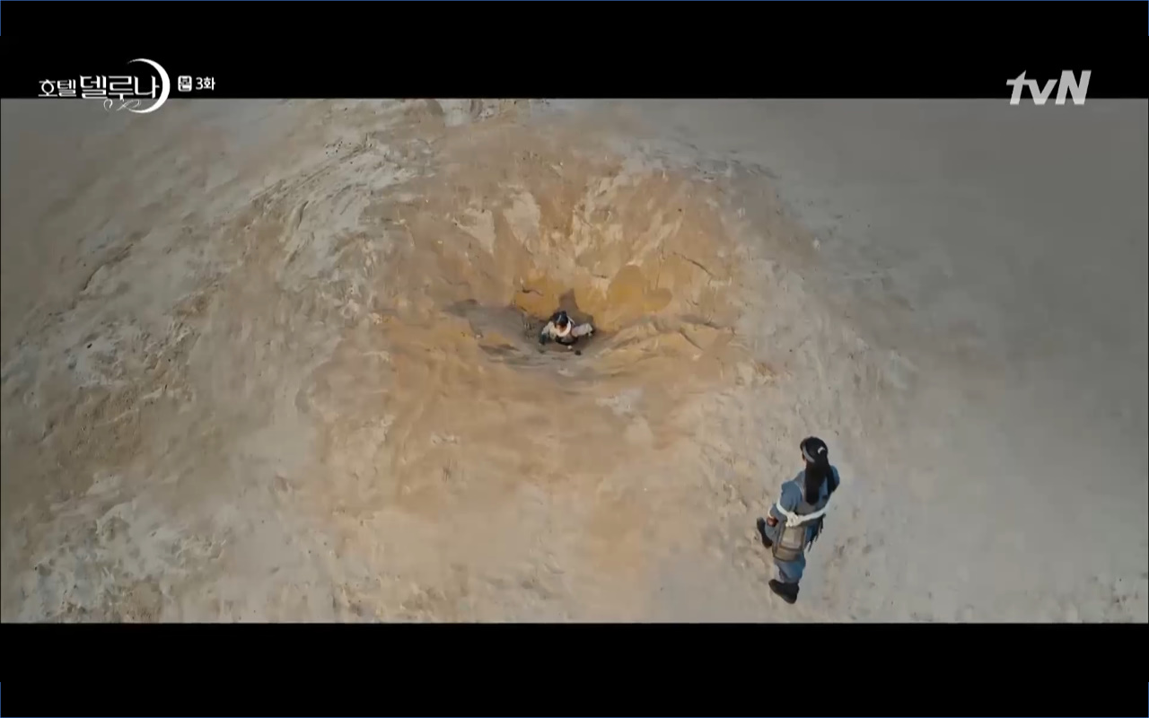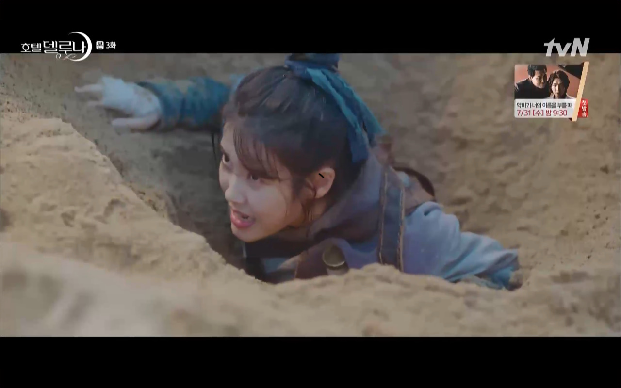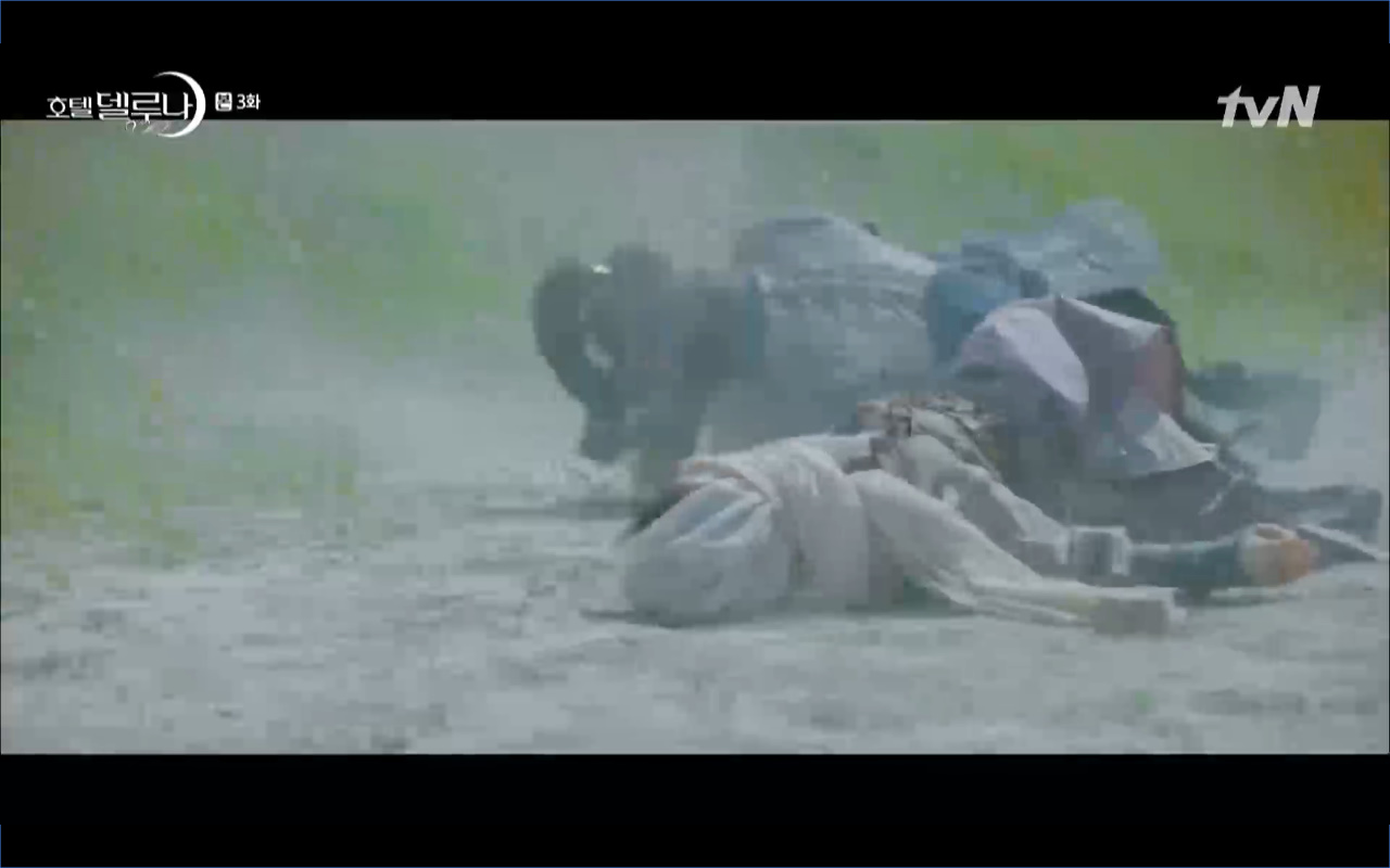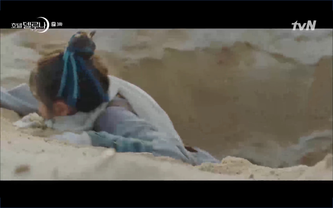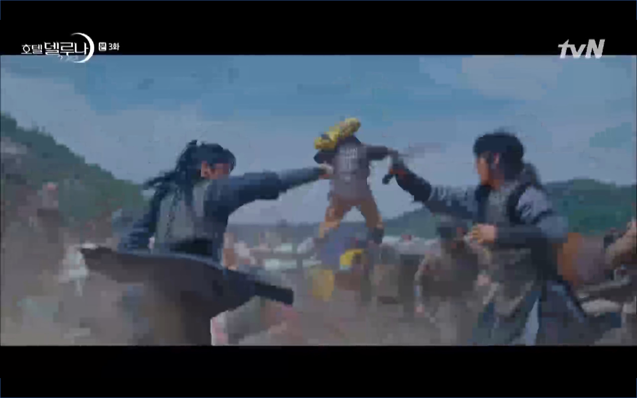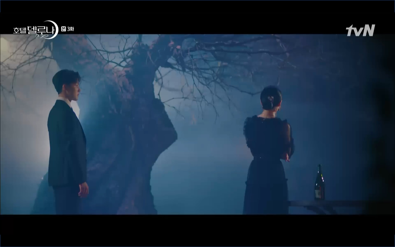 Hotel Del Luna tập 3 mở đầu bằng khung cảnh hồi tưởng về quá khứ của Jang Man Wol (IU), một phần ký ức trước khi cô bị giam cầm ở khách sạn ánh trăng. Trong tiền kiếp, Man Wol quen biết một tên thị vệ từ cuộc nổi loạn cướp bóc của băng đảng do mình cầm đầu. Xuất phát điểm cả hai là thù địch nhưng rồi gắn kết trở thành một phần ý nghĩa trong nhau, anh là tù nhân cũng là ân nhân cứu mạng cô. Chuỗi ký ức không chỉ có Man Wol sở hữu mà đến Go Chan Sung (Yeo Jin Goo) cũng mơ hồ nhìn thấy bản ngã đó trong những giấc mơ của chính mình. Họ thật sự có duyên nợ từ ngàn năm trước?