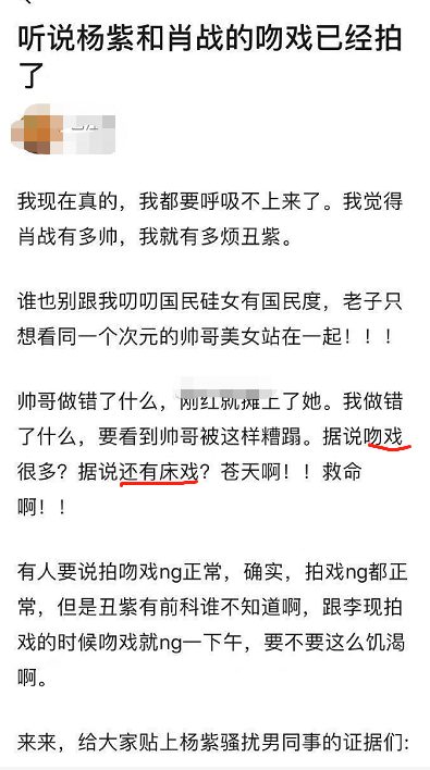 Gần đây, có người hâm mộ còn đăng bài bất mãn, được biết Tiêu Chiến và Dương Tử đã có cảnh quay màn hôn nhau, hiện trường NG (quay hỏng) không ngừng. Theo dân mạng này không chỉ dừng ở màn hôn mà hai người họ còn có cảnh thân thiết hơn càng làm cho người hâm mộ của Tiêu Chiến “tức giận”. Họ một bên công kích Dương Tử, một bên qua trang của đạo diễn phim thể hiện sự bất mãn của mình.