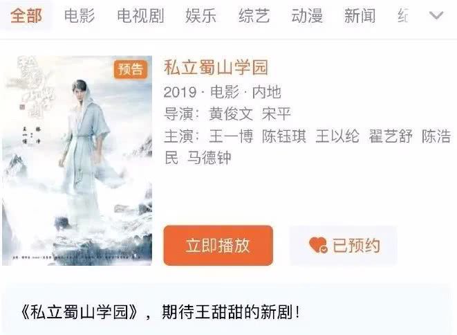 Và sắp tới đây sẽ có một bộ phim huyền huyễn khác do đỉnh cấp lưu lượng đảm nhận vai chính chuẩn bị lên sóng. Đó chính là bộ phim Học viện Tư Lập Thục Sơn. Tác phẩm do Vương Nhất Bác và Trần Ngọc Kỳ chủ diễn, trước mắt đã mở lịch hẹn trước trên các đài, trang mạng.
