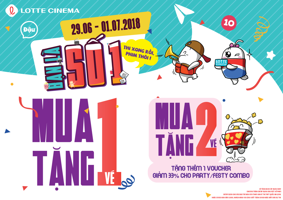 Không những vậy mùa thi THPT kết thúc Lotte Cinema dành tặng cho các bạn học sinh, một chương trình ưu đãi. Từ ngày 29.06-01.07 các bạn trẻ sinh năm 2000 xuất trình CMND, thẻ học sinh hoặc giấy báo dự thi tốt nghiệp THPT.