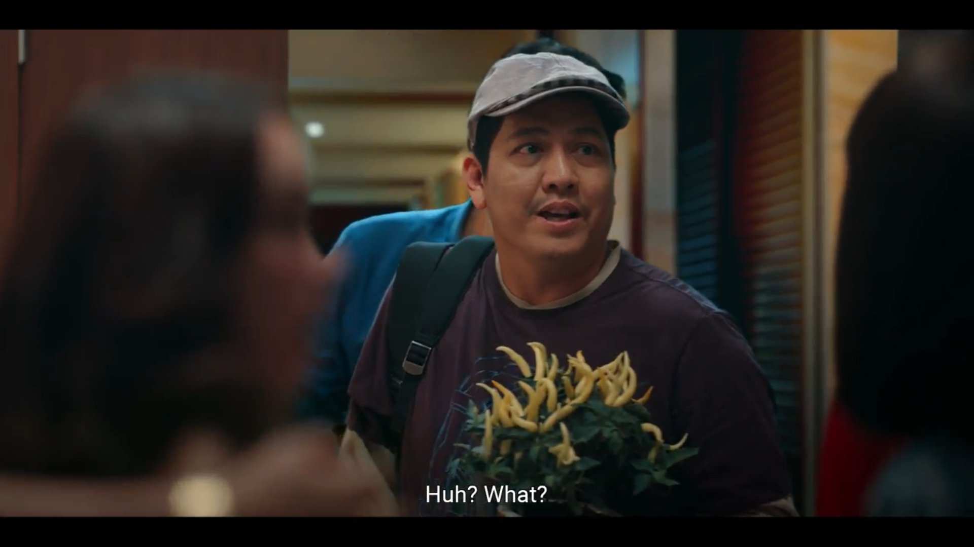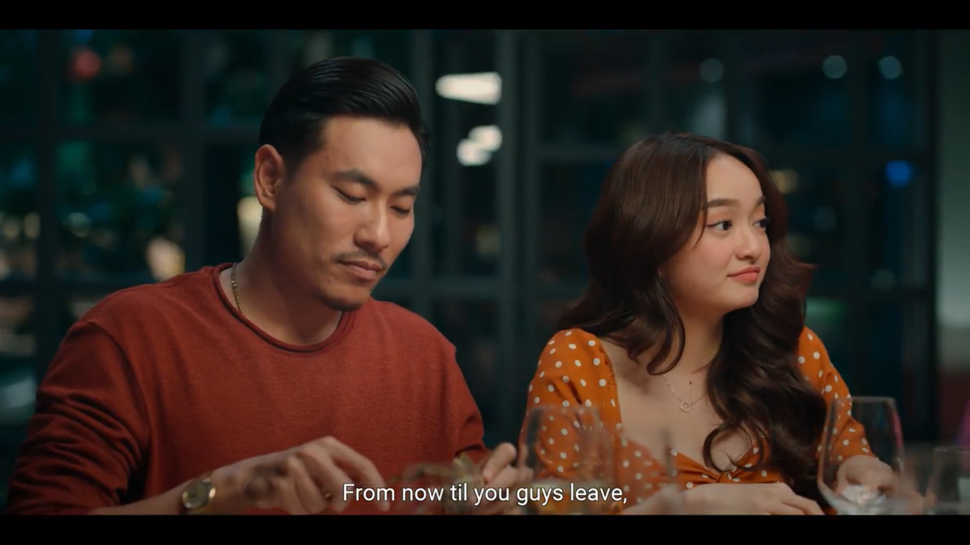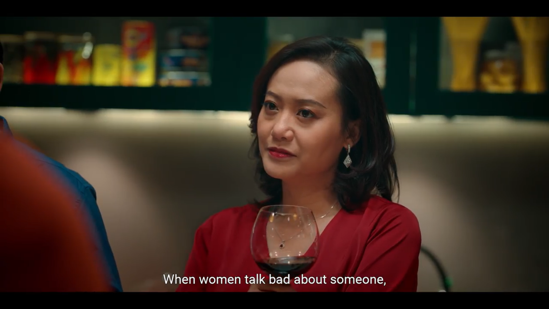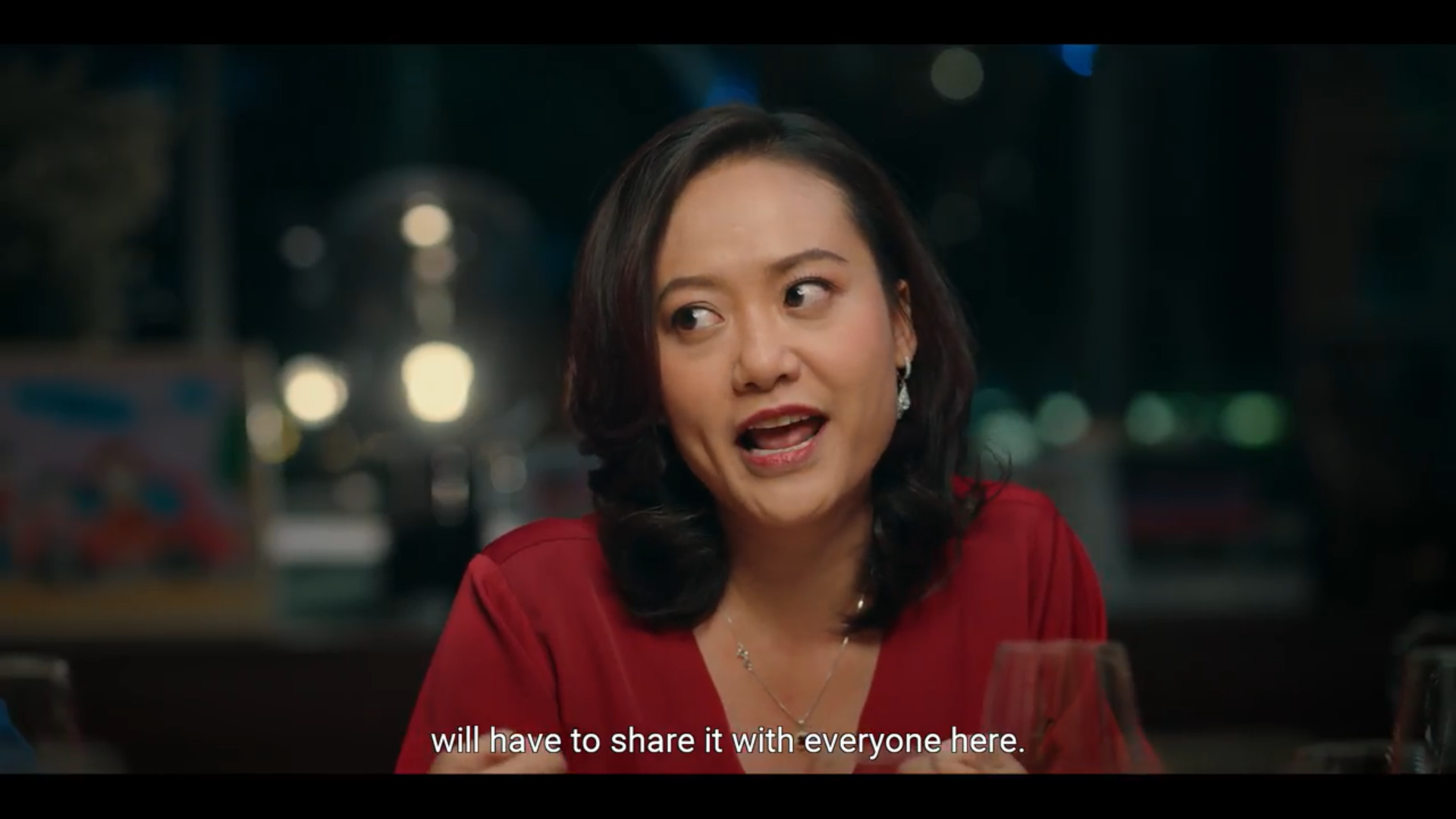 Nội dung tin nhắn có lẽ chính là thứ khiến tất cả các nhân vật bất ngờ đến không nói lên lời, nhưng tại sao lại vậy? Phía xa xa, trên nền trời, một mặt trăng đỏ rực màu máu xuất hiện đằng sau biểu cảm có phần hài hước của các diễn viên, thiết lập một bầu không khí tương phản đầy mỉa mai, trào phúng.
