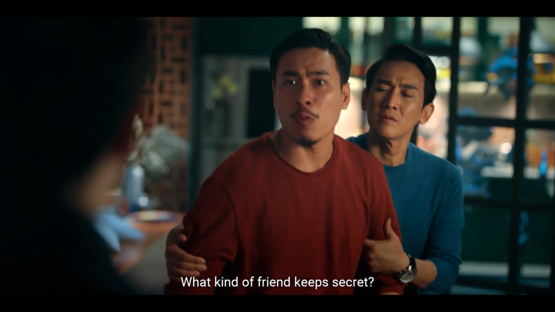 Gần nửa sau trailer, khán giả có thể thấy nét mặt căng thẳng của Đức Thịnh, vẻ lấm lét của Hồng Ánh, câu hỏi đầy sự nghi ngờ của Kaity Nguyễn dành cho Kiều Minh Tuấn trước tin nhắn mà anh nhận được:“Em nhớ quái vật rồng thiêng của em”. Từ không khí ấm áp ban đầu, nghi kị và mẫu thuẫn dâng lên trong nhóm bạn thân. Thay vì tiếng cười rộn rã, họ bắt đầu trao nhau ánh mắt dò xét, ghen tuông, thậm chí là xô xát, cãi vã.