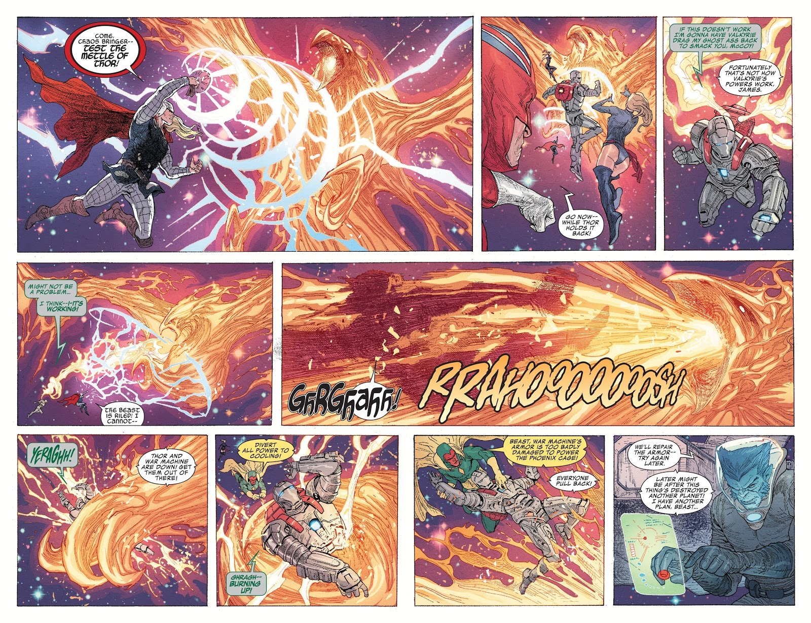 Không chỉ riêng “ông trùm” Thanos mà Phoenix còn khiến một loạt nhân vật nổi tiếng khác của Marvel “ngậm hành” trong bản gốc truyện tranh. Thậm chí, nhóm Avengers lừng danh với những người hùng như Thor, Iron-Man cũng không thể làm gì được sinh vật quyền năng này. Dù thiên tài Iron-Man còn làm hẳn một cỗ máy dành riêng cho việc phá hủy Phoenix, nhưng sinh vật này chỉ đơn giản là… tách làm 5 phần và chiếm hữu 5 vật chủ đầy lợi hại.