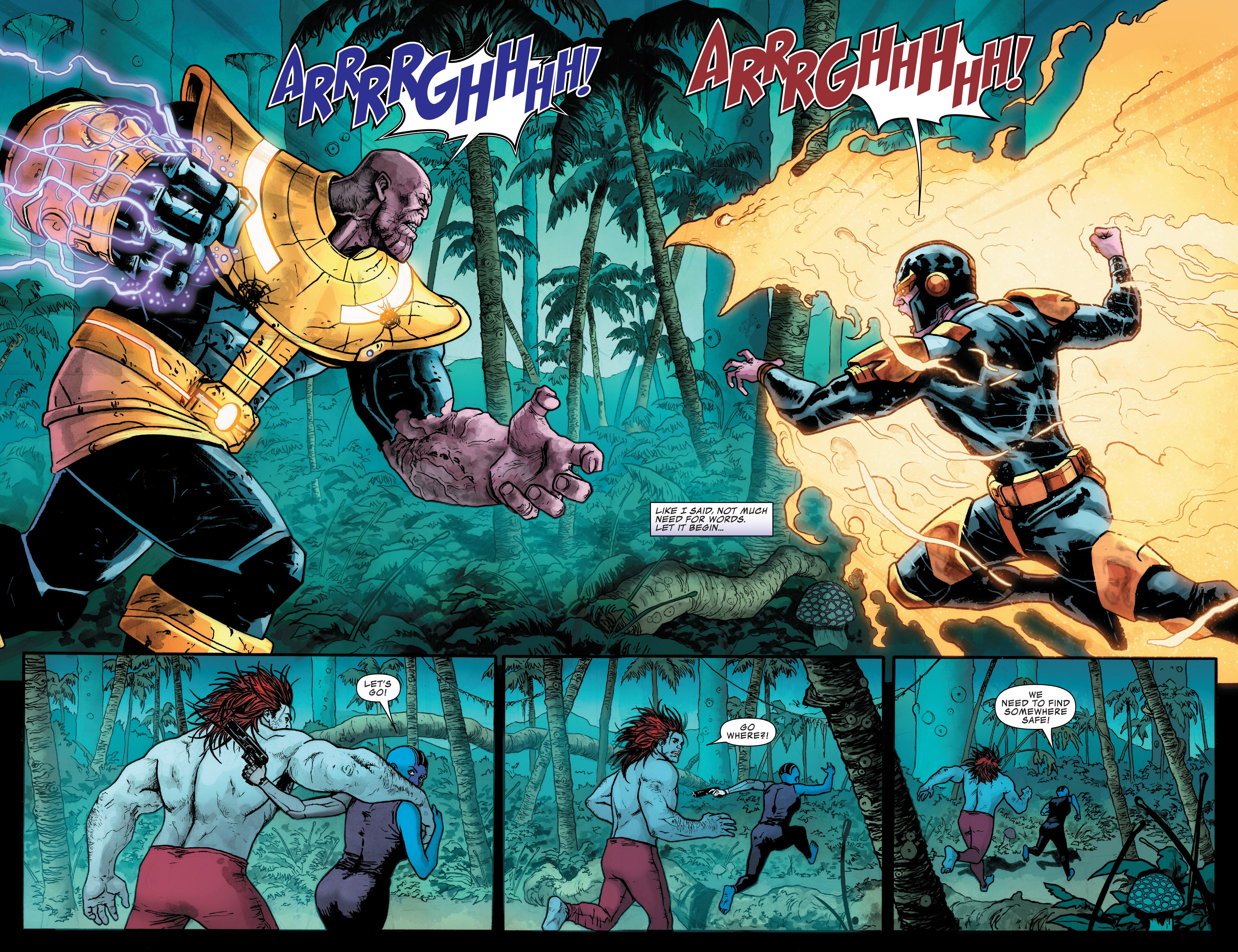 Về sau, Thanos được sự giúp đỡ của ba mụ phù thủy nên đã lấy lại sức mạnh và tái đấu với Thane. Dù vậy, hắn vẫn không tài nào hạ được tên con trai này do Thane mang trong mình sức mạnh của Phoenix. Chỉ tới khi mảnh sức mạnh này bị đẩy khỏi cơ thể Thane thì Thanos mới kết liễu được kẻ thù.
