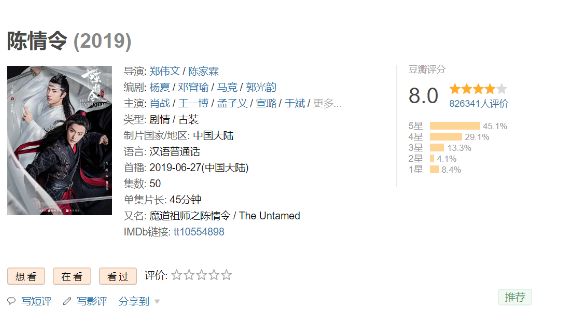 Trước ngày 29.02, trên Douban, Trần tình lệnh đang có số điểm 8.2 với hơn 650 ngàn người đánh giá. Chưa đầy một ngày, điểm số của Trần tình lệnh bất ngờ giảm xuống còn 8.0, ngoài ra lượng người tham gia bình chọn tăng lên đến 820 ngàn người, gần 150 ngàn người đồng loạt vote 1 sao chỉ trong tối qua (29.02).