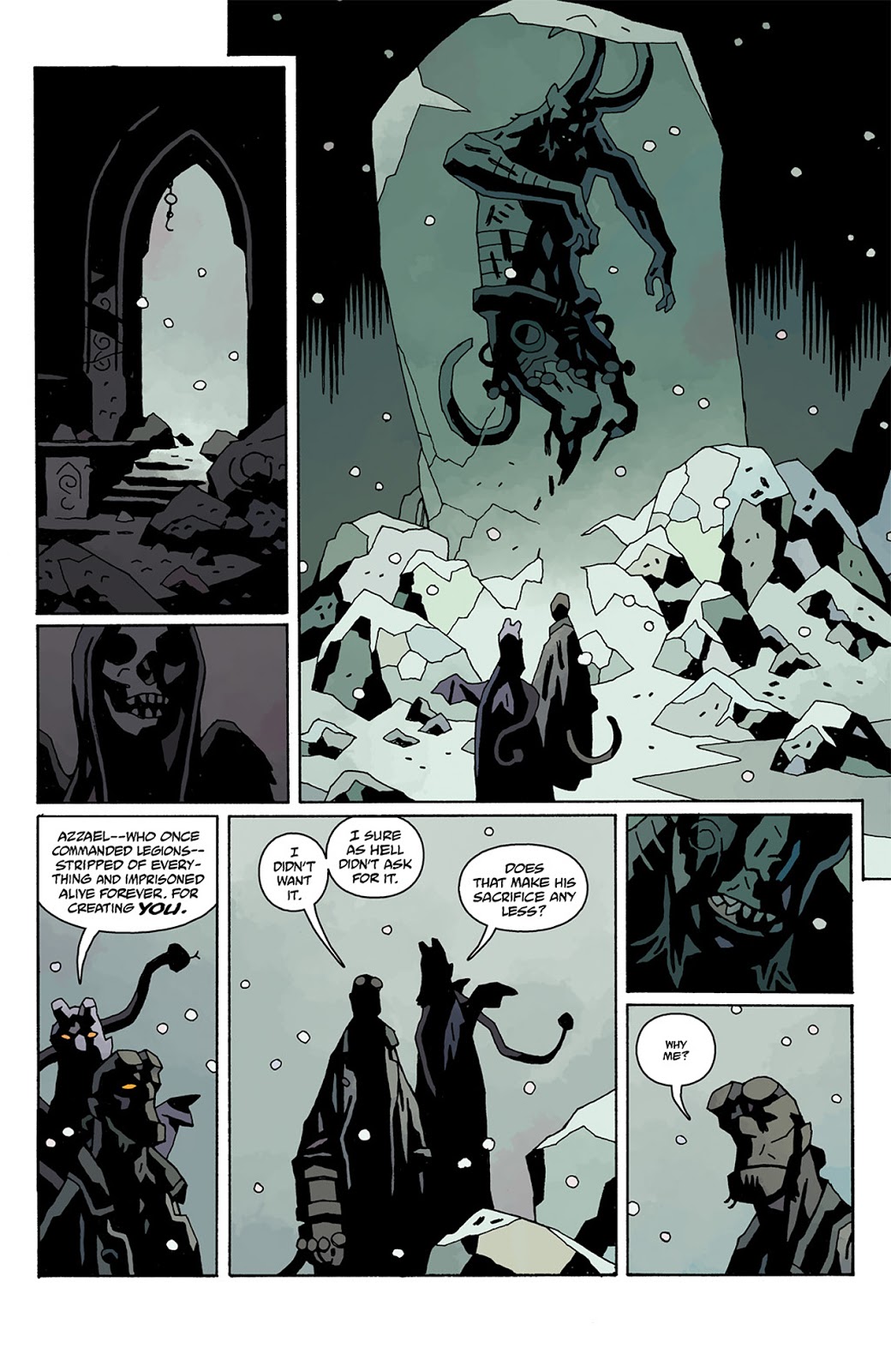 Thật sự lý do Azzael có được The Right Hand of Doom hay sự ra đời của Hellboy vẫn là một ẩn số vô cùng lớn với cả người anh của hắn - Astaroth và hai người con trưởng là Lusk và Gamon. Tuy nhiên các hoàng tử của địa ngục khác đã sớm phát hiện ra sự tồn tại của Hellboy cũng như nhận ra báu vật The Right Hand of Doom đang nằm trong tay Azzael, và liền đánh thức các thiên thần của diệt vong để chấm dứt tất cả. Trong khi tòa thành của mình bị tấn công, Azzael đã bình tĩnh gửi Hellboy đi khỏi. Tuy nhiên, Astaroth đã nghĩ rằng Azzael không chủ định gửi Hellboy tới Trái Đất mà nó phần nhiều là do việc làm của tên pháp sư Rasputin hoặc do hồn ma hai người con đã mất của Sara.