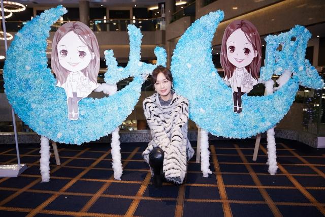 Tần Lam chụp hình chung với tranh vẽ bằng tay từ Miyazaki.