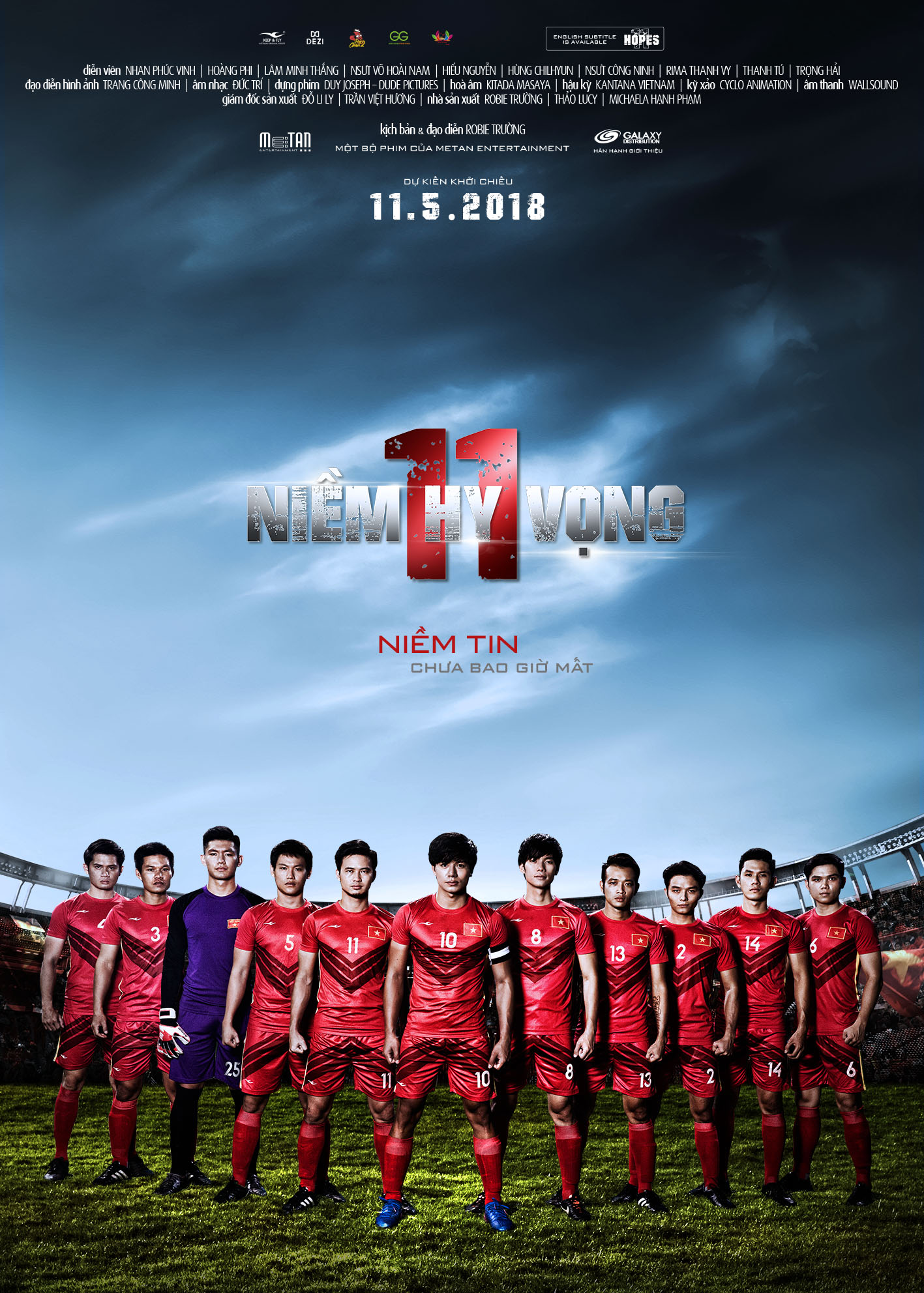 11 niềm hy vọng là một bộ phim điện ảnh tâm lý, hành động đầy cảm hứng về bóng đá Việt Nam. Câu chuyện xoay quanh những chàng trai trẻ với tình yêu bóng đá mãnh liệt và niềm khát khao được một lần khoác lên mình màu cờ của đất nước, cháy hết mình cho niềm tin từ hàng triệu trái tim Việt Nam. Đặc biệt, 3 danh thủ Lê Huỳnh Đức, Hồng Sơn và Phan Văn Tài Em cũng sẽ góp mặt trong phim.