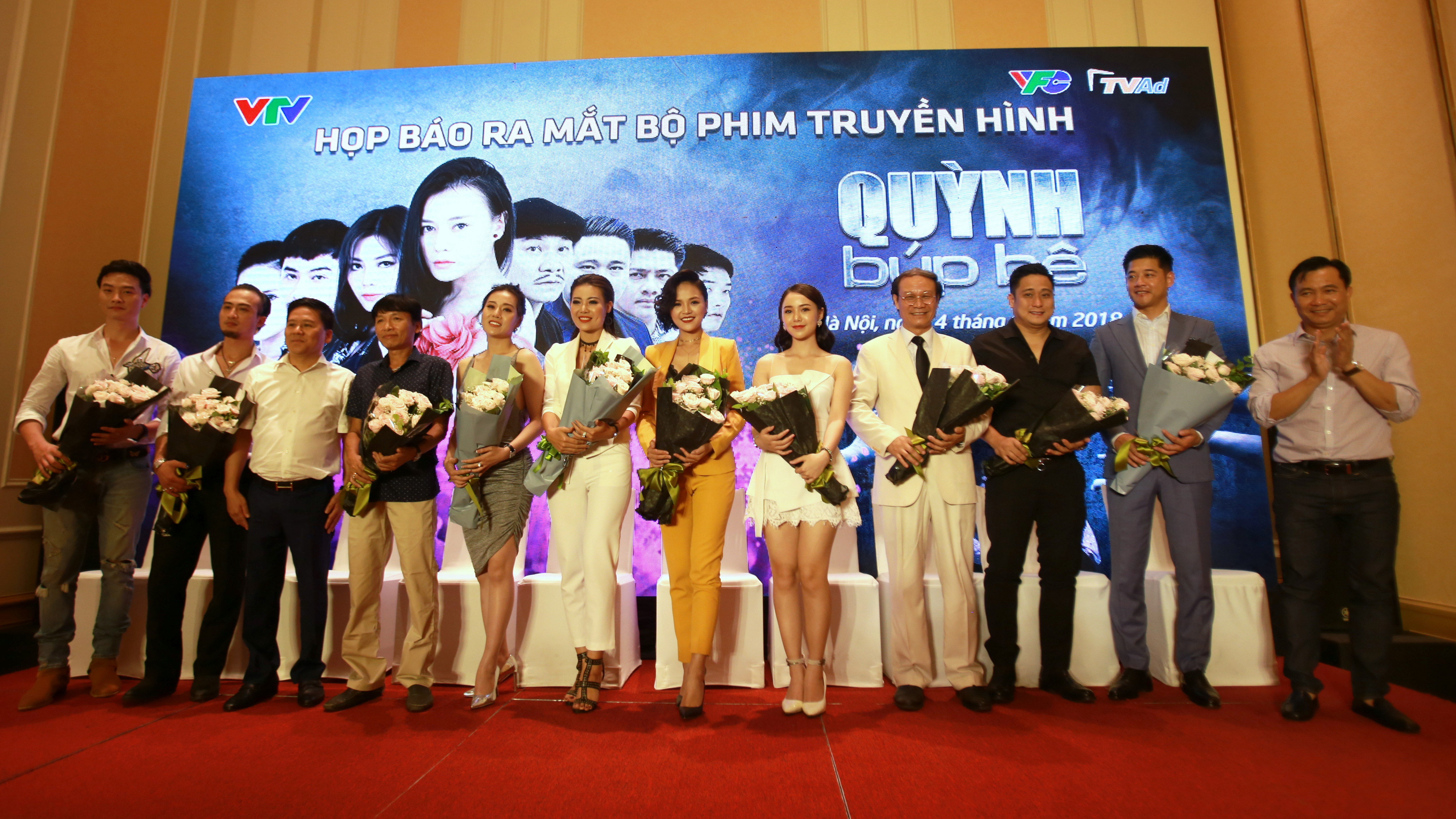Dàn diễn viên chính xuất hiện trong họp báo ra mắt phim “Quỳnh búp bê”.