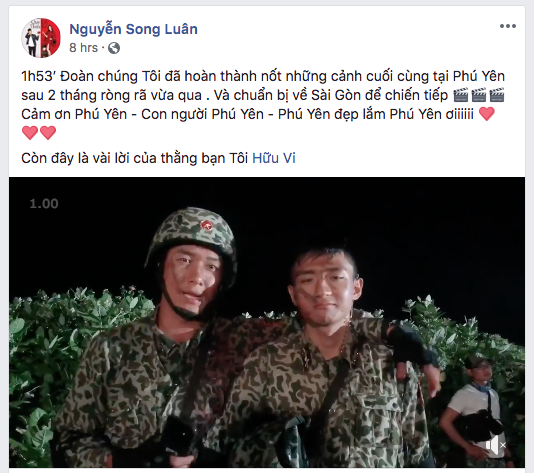 Dù là cảnh quay cuối cùng nhưng không khí làm việc vẫn rất khẩn trương và sôi nổi. Ekip làm phim vẫn phải giữ tập trung để đảm bảo sự an toàn cho các thành viên và diễn viên trong những cảnh quay rất nguy hiểm. Song Luân hào hứng chia sẻ cảm giác trước khi rời khỏi bối cảnh và di chuyển về nơi nghỉ ngơi: “Có rất nhiều kỉ niệm, niềm vui và gian khổ cùng với đoàn làm phim. Còn một đoạn thời gian nữa mới đến đích, hy vọng mọi người sẽ ủng hộ và ekip sẽ giữ vững tinh thần làm việc cho đến khi kết thúc. Luân yêu Việt Nam nhiều phong cảnh quá đẹp, yêu Phú Yên và nếu không có bộ phim này Luân không biết Phú Yên đẹp như thế này!”.