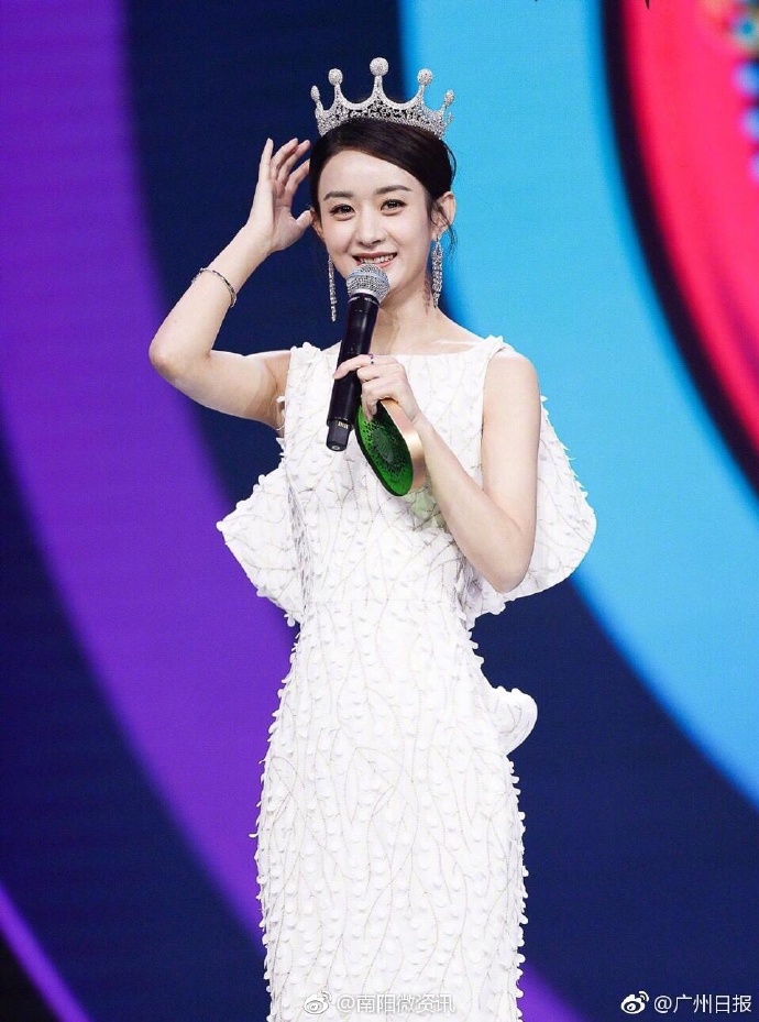 Triệu Lệ Dĩnh giành giải thưởng 'Nữ thần IQIYI ', mượn câu nói của Phạm Băng Băng đùa rằng “Không được cúi đầu, vương miệng sẽ rơi”.