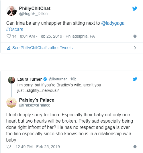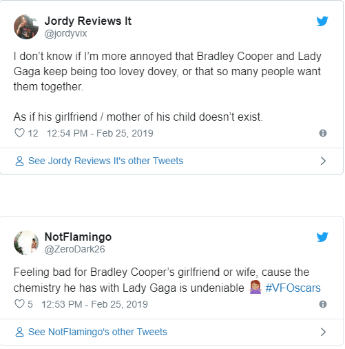 Họ là cặp đôi hot nhất Hollywood, nhưng thực tế Bradley Cooper và Lady Gaga lại chẳng phải là một đôi. Trên sân khấu Oscar 2019, cặp đôi của A Star Is Born đã tình tứ trao nhau bài hát Shallow, gần gũi tới mức thiếu điều thì hôn nhau trên phím đàn. Vấn đề là, Bradley Cooper là “hoa đã có chậu”, nàng bạn gái xinh đẹp Irina Shayk vẫn còn ngồi sờ sờ dưới sân khấu dưới kia. Cư dân mạng đã ngay lập tức phản ứng, một phần thì phát cuồng vì màn trình diễn ngọt ngào, số khác lại cho rằng Gaga đang diễn hơi sâu, nhập tâm quá đà.