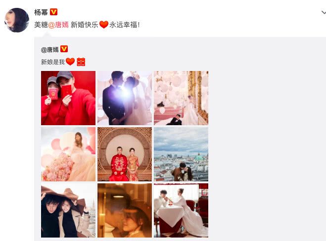 Về vấn đề khách quý đến dự hôn lễ của Đường Yên và La Tấn đã trở thành một chuyện được cư dân mạng bàn tán rất nhiều. Dương Mịch - bạn thân của cô dâu Đường Yên đã chia sẻ lại bài viết của Đường Yên và chúc mừng đám cưới của bạn mình với dòng caption “Đường xinh đẹp @Đường Yên tân hôn vui vẻ, mãi mãi hạnh phúc.” Đây cũng là hành động bác bỏ tin đồn cả hai rạn nứt tình bạn trước đây.