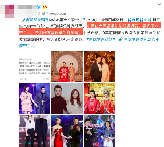 Sau đó đã rất nhiều tin tức đưa ra trong đám cưới của Đường Yên và La Tấn hôm nay tại Vienna (Áo) diễn ra vô cùng nghiêm ngặt. Vì tính riêng tư của hôn lễ mà cả cô dâu và chú rể yêu cầu khách đến tham dự tiệc cưới không được mang theo điện thoại di động hay bất cứ thiết bị quay chụp hình. Nhiều người bạn thân của đôi tân lang tân nương phải đeo một lại đeo 1 loại đồng hồ riêng biệt mới được vào hôn lễ.