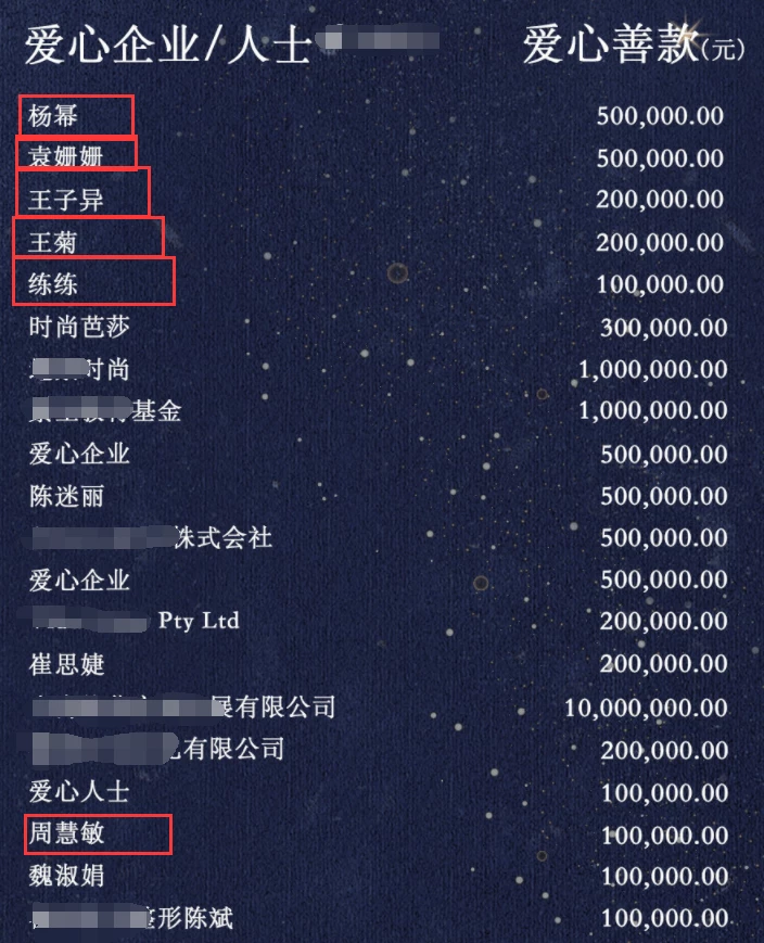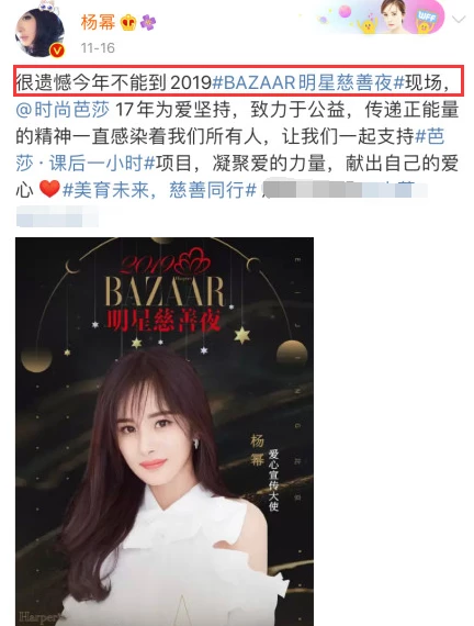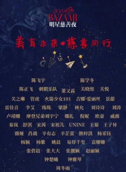 Ngày 13.12, trên mạng công bố danh sách ủng hộ cụ thể trong đêm hội từ thiện Bazaar 2019 của dàn sao Hoa Ngữ. Theo thống kê, số tiền được quyên góp trong đêm tiệc lên đến hơn 26 triệu NDT (88 tỷ đồng). Năm nay so với hai năm trước, dàn khách mời không còn “chất lượng” khi thiếu vắng nhiều tên tuổi lớn, cựu tổng biên tập Bazaar Tô Mang từ chức nhường chỗ cho người mới cũng khiến không khí chương trình có phần chùng xuống, hiệu ứng truyền thông cũng kém hơn mọi năm.