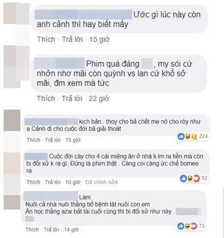 Nhiều người cho rằng, biên kịch Kim Ngân đã thực sự quá tay khi đưa cho Lan một cuộc đời oái oăm như vậy. Cũng có nhiều người hy vọng, thay vì để cô sống lay lắt thì hãy để Lan đi theo Cảnh (Doãn Quốc Đam đóng), dù chẳng còn xuất hiện nhưng được khán giả nhớ mãi.