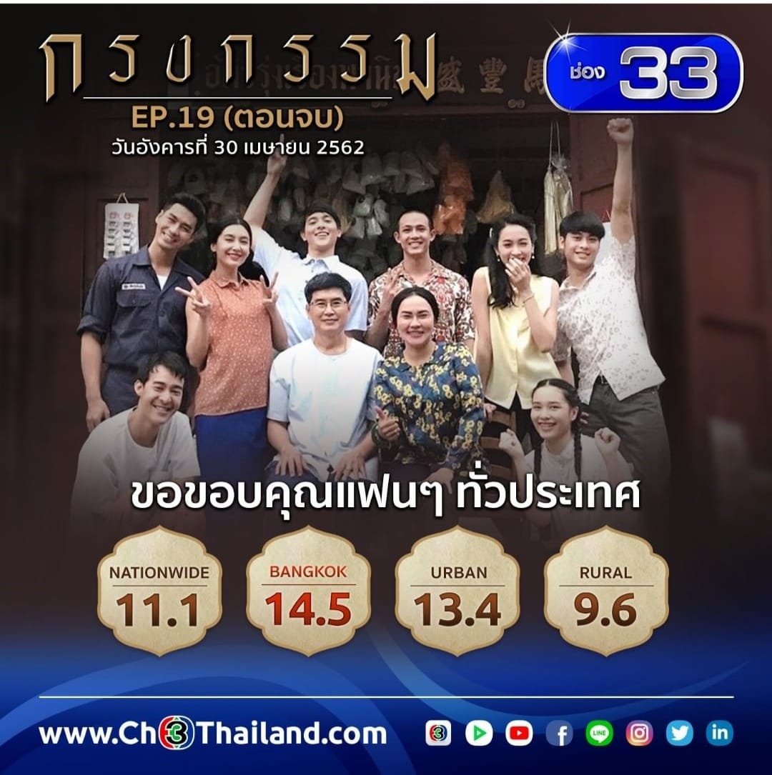 Chúc mừng Lồng nghiệp chướng bộ phim thành công nhất của channel 3 đến thời điểm hiện tại. Phim kết thúc với rating lên đến 2 con số, cụ thể rating tập cuối cực ấn tượng khi toàn quốc đạt 11.1 và Bangkok 13.4. Krong Karm thành công ngoài mong đợi, ghi nhận một tác phẩm hay xuất sắc của nữ chính Bella Ranee và nam chính James Jirayu.