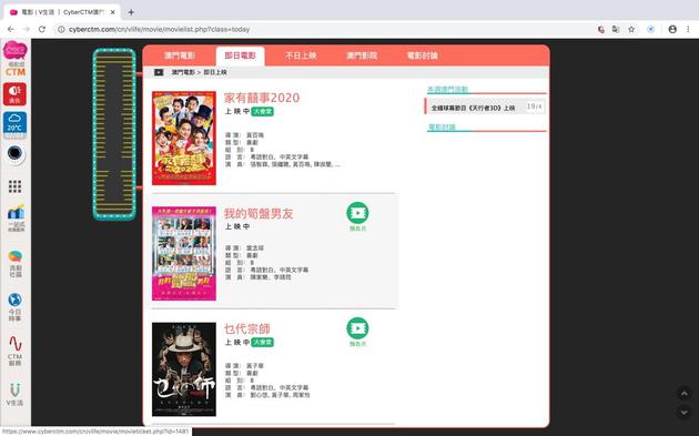 Phóng viên của Báo Tân Kinh thông qua ứng dụng mua vé của rạp chiếu phim Macao đã phát hiện rằng 4 rạp chiếu phim tại Macao đã trong trạng thái chuẩn bị hoạt động trở lại nhưng trên cơ bản, lịch chiếu phim ngày hôm nay (02/03) vẫn chưa có hay bán vé trực tuyến. Tuy nhiên có rạp chiếu phim ở khu vực St. Anthony's Parish đã cho chiếu ba bộ phim điện ảnh. Trong đó có Chuyện hỉ trong nhà 2020 nhưng chỉ có hai buổi chiếu phim gồm suất 14:30 và 19:45.
