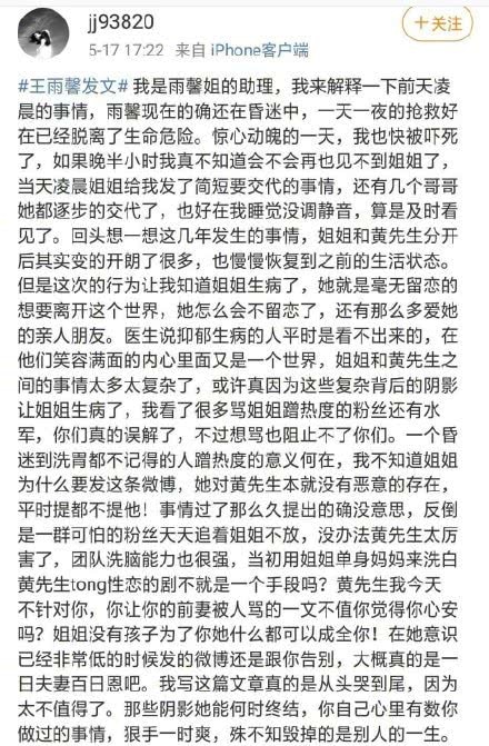 Cách đây ít ngày, một người tự xưng là trợ lý của Vương Vũ Hinh đăng tải bài viết trên weibo nói rằng Vương Vũ Hinh đột nhiên tự sát là vì công ty của Hoàng Cảnh Du “quá lợi hại”. Fan hâm mộ nam diễn viên thường mắng chửi cô ấy hám fame tình cũ, đồng thời nói rằng Hoàng Cảnh Du quá ác độc, hủy hoại cuộc đời của người khác. Hình tượng của Hoàng Cảnh Du một lần nữa tuột dốc trong mắt khán giả.