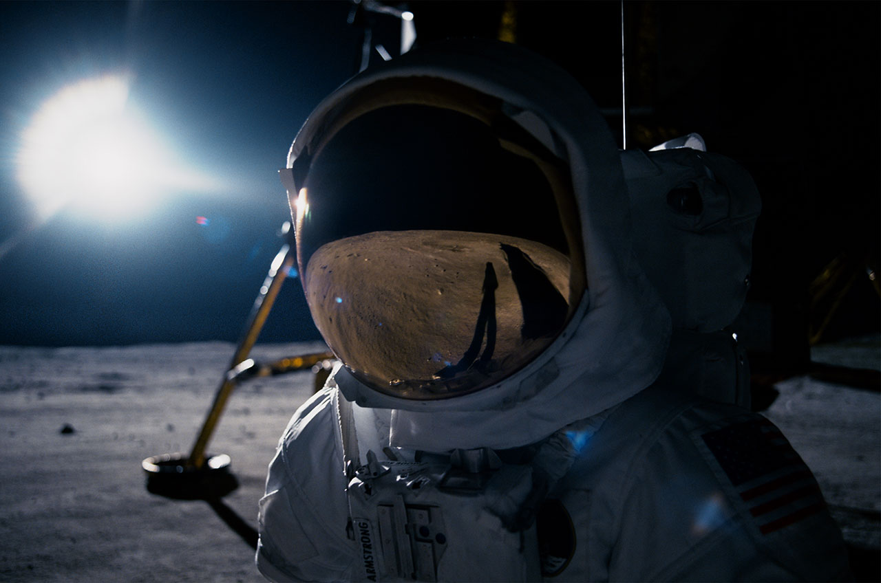 Chi tiết Neil Armstrong đặt bước chân trái đầu tiên xuống nền đất mặt trăng đã khiến những ai khi xem đều vỡ oà trong… im lặng. Khi ấy, khán giả mới hiểu được người đàn ông này đa sầu đa cảm đến dường nào. Ryan Gosling đã thành công lột tả được ánh mắt tưởng như vô hồn, nhưng lại là bản giao hưởng cảm xúc khi lần đầu hoà mình vào bầu không khí lạ lẫm của miền đất mới. Cảnh quay đắt giá nhất phải kể đến là khi Neil cầm chiếc vòng tay bé con của Karen để lại, sau đó quăng vào khoảng tối của mặt trăng. Không mang trang sức của vợ như Gus từng chia sẻ, không mang thêm nhiên liệu như khi mạnh miệng mỉa mai tại buổi họp báo, trái lại, Neil mang theo thứ anh trân quý nhất thời gian qua - kỉ vật của cô con gái nhỏ mà anh từng thương hết mực.