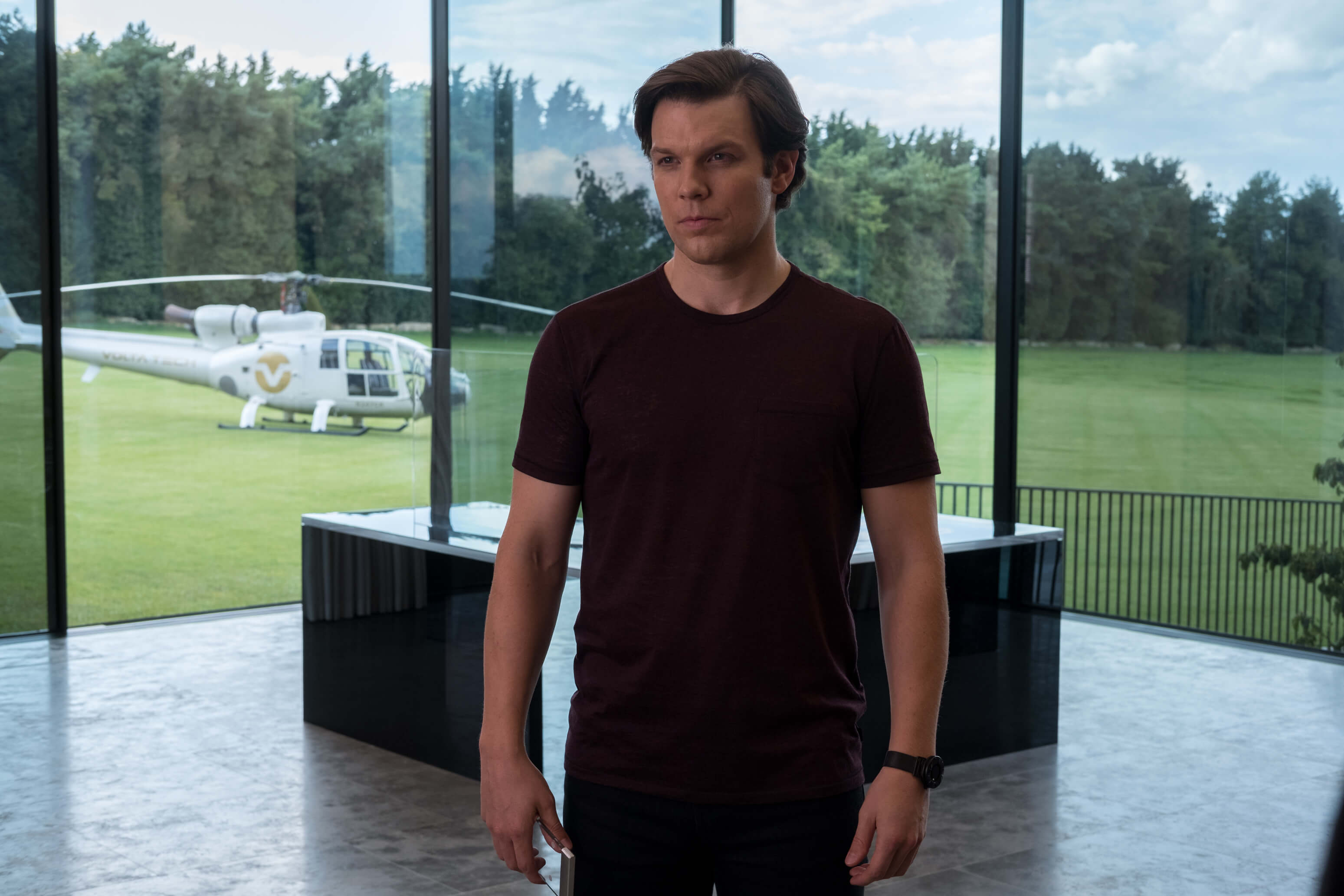 Xuyên suốt phim, có thể thấy English không hề có ấn tượng với những món hàng hiện đại. Ông không cần điện thoại, cũng không muốn siêu xe, càng không thích làm việc qua màn hình. Khi được nhân viên hướng dẫn sử dụng kính thực tế ảo và phải kí đơn cam kết bảo hiểm, English cũng tỏ ra tự ái, cho rằng nhân viên đang coi thường ông, từ đó dẫn đến một loạt tai nạn dở khóc dở cười.