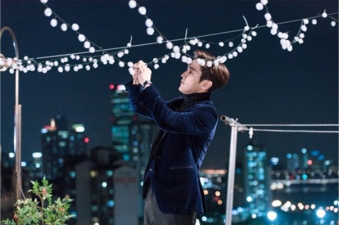 Trong cảnh quay thứ hai, Byun Hyuk say mê trang trí sân thượng của Baek Jun với những ánh đèn lãng mạn.