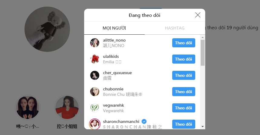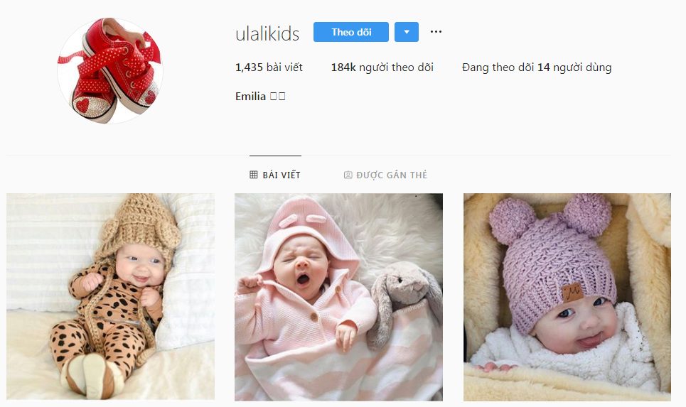 Tài khoản Instagram của Trương Hinh Nguyệt theo dõi những trang về trẻ con