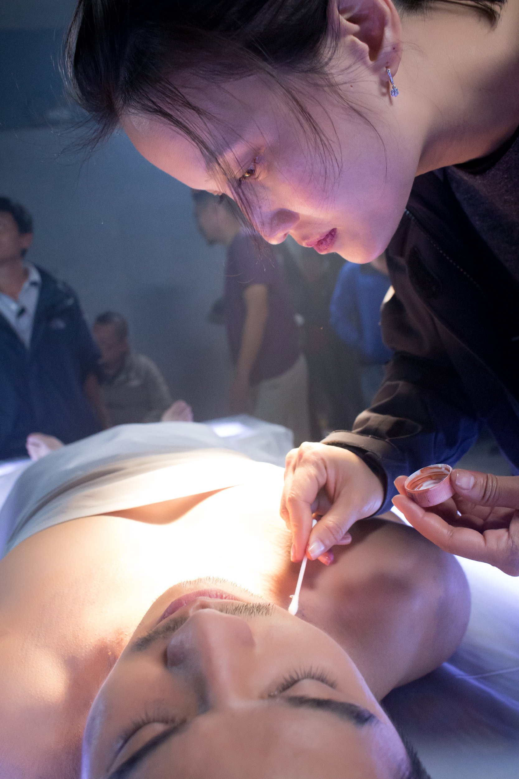 Lilan Trần đích thân chuẩn bị hóa trang cho diễn viên trong cảnh quay quan trọng này.