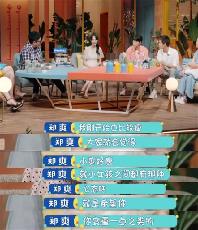 Hay như Kiều Chấn Vũ từng hợp tác với Trịnh Sảng trong Cổ kiềm kỳ đàm trong một lần phỏng vấn nói Dương Tử giống như sắp thành tiên vật, đến giờ ăn cơm thì không tìm thấy người, không thấy cô ăn cơm gì cả. Hay như Trần Ý Hàm từng cùng Trịnh Sảng ghi hình Hoa nhi và Thiếu niên trong một phẩn vấn nói, trong ba tháng chỉ thấy Trịnh Sảng ăn cơm hai lần. Trong khi đó Tỉnh Bách Nhiên từng hợp tác với Trịnh Sảng trong một phim truyền hình cũng nói, hợp tác cùng Trịnh Sảng lâu như vậy nhưng chưa từng thấy cô ấy ăn thứ gì. Trịnh Sảng vì giảm cân thật sự rất vất vả.